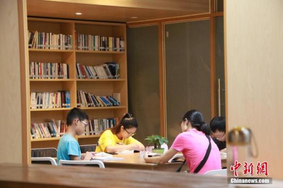 資料圖:數(shù)名讀者正在自助圖書館閱讀。中新社發(fā) 劉佩琦 攝