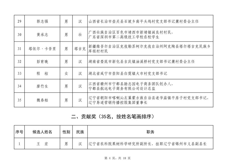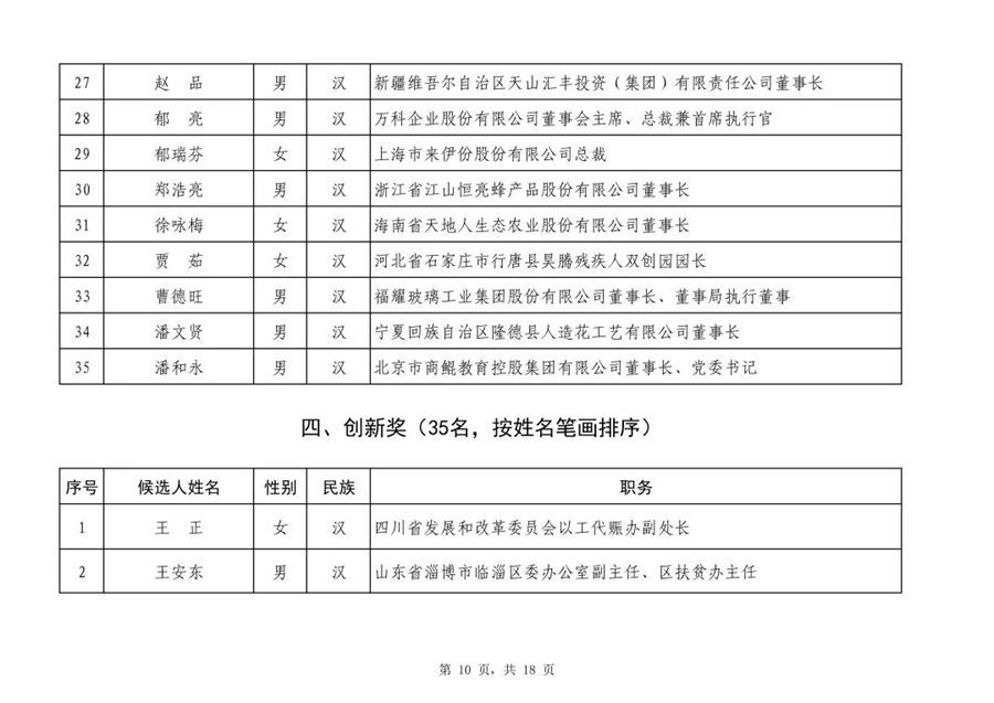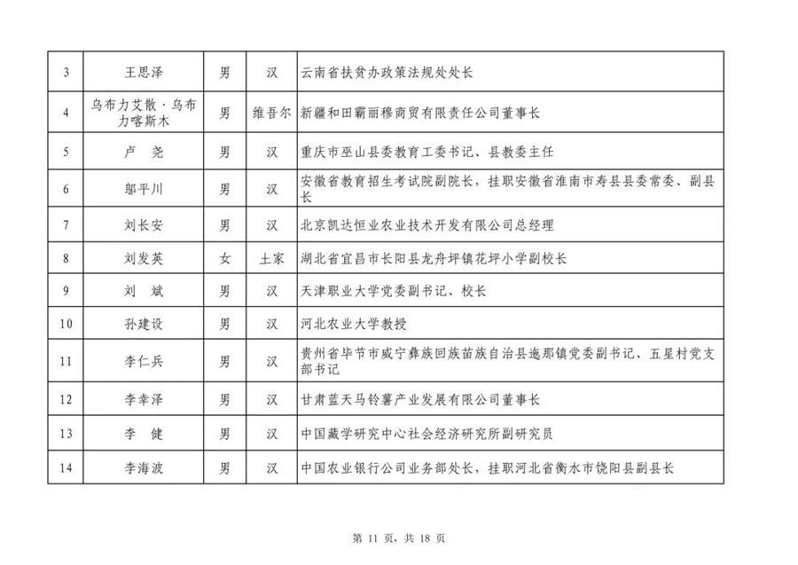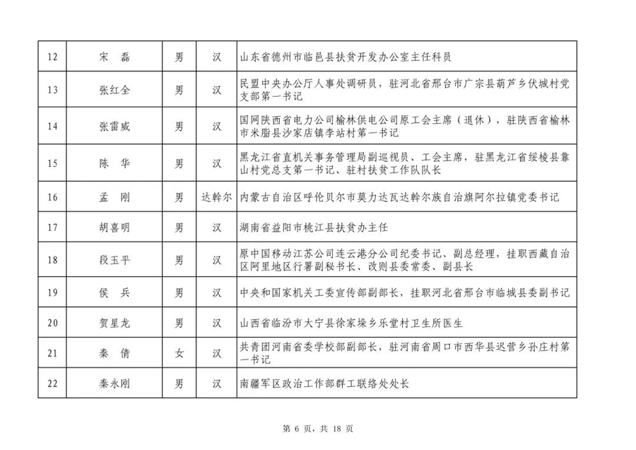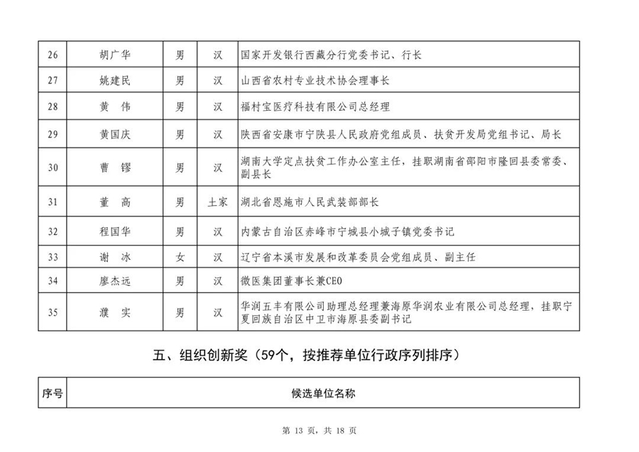 根據(jù)國務(wù)院扶貧開發(fā)領(lǐng)導(dǎo)小組印發(fā)的《2019年全國脫貧攻堅獎評選表彰工作方案》,經(jīng)全國脫貧攻堅獎評選委員會初次評審,以下140名人選和59個單位作為2019年全國脫貧攻堅獎初評候選人(單位),現(xiàn)予以公示。