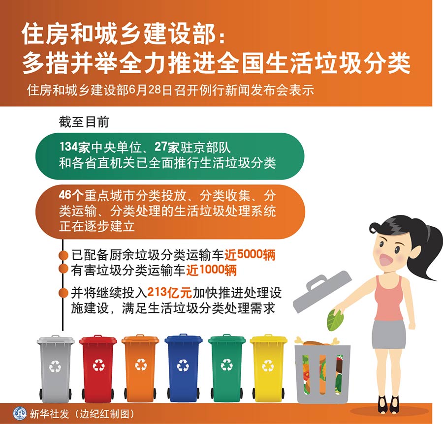 新華社北京6月28日電(記者王優(yōu)玲)住房和城鄉(xiāng)建設(shè)部28日召開例行新聞發(fā)布會(huì)表示,下一步將繼續(xù)會(huì)同有關(guān)部門多措并舉全力推進(jìn)生活垃圾分類工作。
