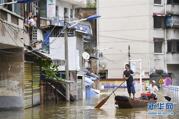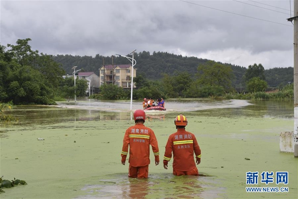 7月14日,湖南省永州市零陵區(qū)富家橋鎮(zhèn)漁池頭村發(fā)生洪澇災(zāi)害,有關(guān)部門(mén)迅速展開(kāi)救援。新華社發(fā)(陳思汗 攝)