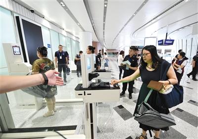 7月19日,北京大興國際機場首次綜合演練,安檢采用自助身份驗證系統(tǒng)。本版攝影/新京報記者 陶冉