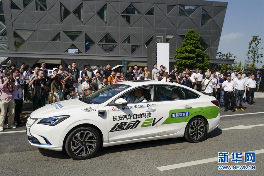 國內(nèi)首個(gè)5G自動(dòng)駕駛公共服務(wù)平臺(tái)暨5G自動(dòng)駕駛開放道路場景示范運(yùn)營基地在重慶投入使用。這是長安汽車的一臺(tái)L4級自動(dòng)駕駛汽車在啟動(dòng)儀式現(xiàn)場進(jìn)行演示(2019年7月26日攝)。新華社記者 劉潺 攝