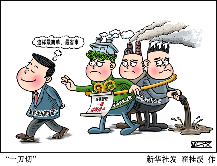 值得注意的是,有些地方“一刀切”政策開(kāi)始搞移花接木。中部多家企業(yè)的相關(guān)負(fù)責(zé)人反映,遇到上級(jí)部門(mén)前來(lái)檢查、督查時(shí),地方政府擔(dān)心指標(biāo)不符合要求,就讓企業(yè)一律采取停產(chǎn)應(yīng)對(duì)??稍趯?duì)外發(fā)布消息時(shí),卻說(shuō)成“企業(yè)停產(chǎn)檢修”“企業(yè)升級(jí)改造設(shè)備”,本是地方的“一刀切”要求,卻搖身一變成為企業(yè)的“自行選擇”。