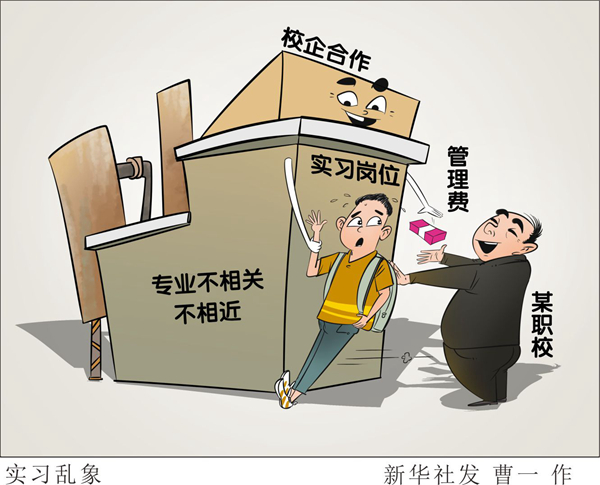 業(yè)內(nèi)人士認(rèn)為,一些職業(yè)學(xué)校將學(xué)生隨意送到一些與專業(yè)無關(guān)的企業(yè)實(shí)習(xí),甚至以此牟利,這背離了職業(yè)教育的初衷。教育、人社等主管部門應(yīng)加大對(duì)職校實(shí)習(xí)的監(jiān)管力度,斬?cái)嗦毿?shí)習(xí)背后的利益鏈條,防止“校企合作”成為“校企交易”。