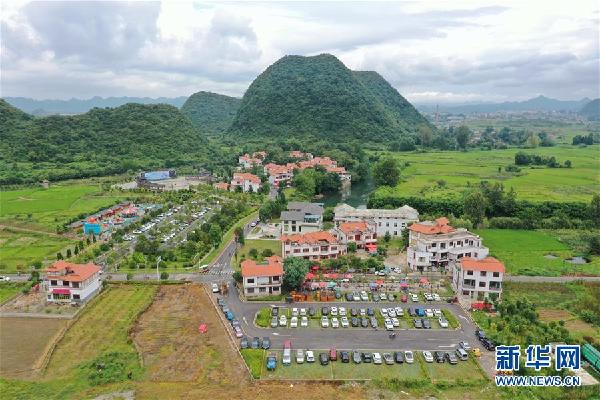 這是8月4日無人機(jī)拍攝的貴州省安順市平壩區(qū)夏云鎮(zhèn)小河灣村風(fēng)光。新華社記者 李凡 攝