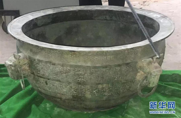 警方在蘭州市西固區(qū)河口鎮(zhèn)一倉庫內截獲文物“鑒盆”(8月8日攝)。新華社發(fā) (蘭州市公安局新聞辦 供圖)