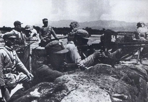↑1937年7月7日,駐華日軍發(fā)動“七七事變”(又稱“盧溝橋事變”),開始全面侵華。這是中國軍隊在盧溝橋抗擊日軍的進攻。新華社發(fā)