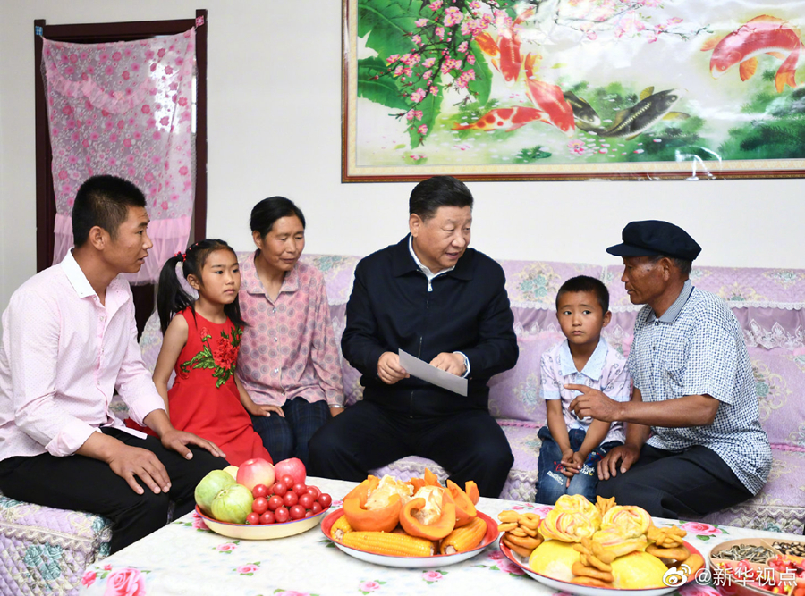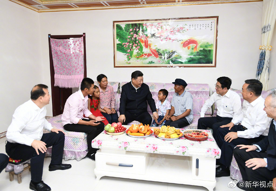 富民新村地處甘肅省古浪縣黃花灘生態(tài)移民區(qū),習近平總書記21日上午來到這里,看望從山區(qū)生態(tài)移民易地扶貧搬遷的鄉(xiāng)親們。他走進村民李應(yīng)川家,小院潔凈、住房敞亮、廚衛(wèi)設(shè)施齊全。在客廳坐下來,李老漢拿出一張搬遷前的老照片給總書記看,曾經(jīng)居住的土坯房同窗明幾凈的新居有天壤之別。習近平對這里群眾生產(chǎn)生活條件發(fā)生的巨大變化感到十分欣慰,李老漢連連感嘆現(xiàn)在日子太幸福了。習近平強調(diào),你們高興我們也高興,共產(chǎn)黨就是為人民服務(wù)的,就是為老百姓辦事的,讓老百姓生活更幸福就是共產(chǎn)黨的事業(yè)。(文字記者:張曉松、朱基釵 攝影記者:鞠鵬、謝環(huán)馳)