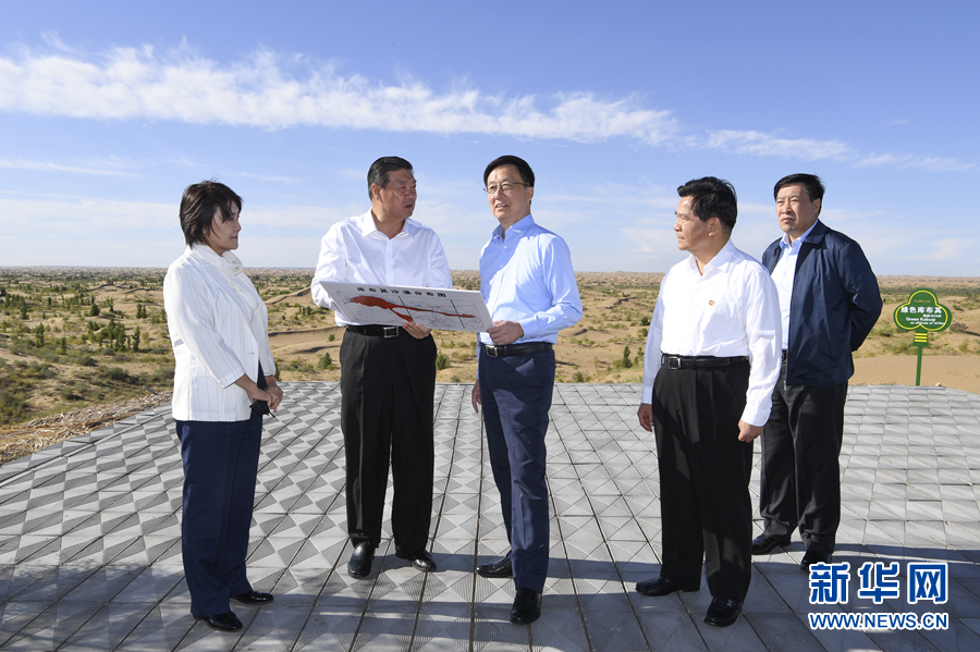 8月26日至27日,中共中央政治局常委、國務院副總理韓正到內(nèi)蒙古自治區(qū)鄂爾多斯市,就庫布其沙漠防沙治沙和生態(tài)建設情況進行調(diào)研。這是8月27日,韓正來到位于庫布其沙漠腹地的沙峰綠谷,實地查看科技手段治沙成果。新華社記者 張領 攝