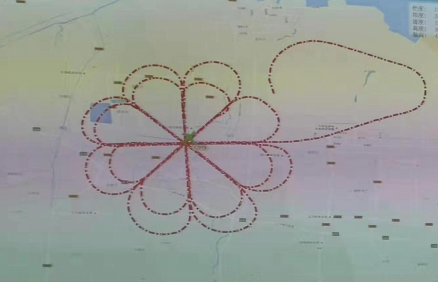 試飛數(shù)據(jù)顯示,7日下午14點(diǎn)06分,飛機(jī)離開東營勝利機(jī)場,從不同方向飛過一個點(diǎn),空中飛行了近4個小時。下午18點(diǎn)左右,飛機(jī)降落回東營勝利機(jī)場。