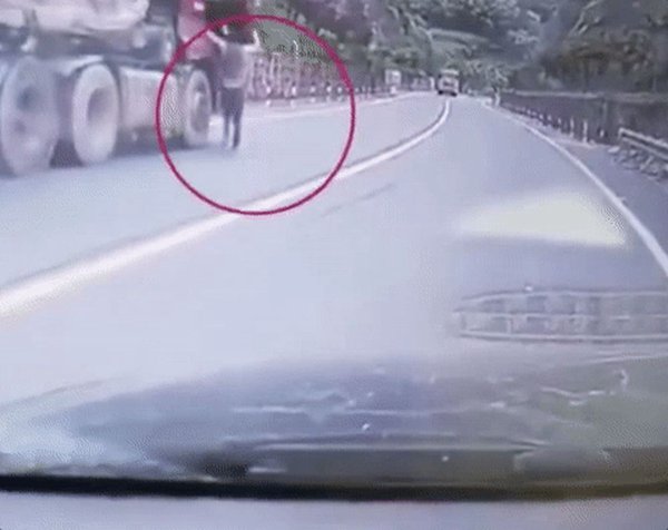 掛車在距國道繁忙路段僅30米處停下