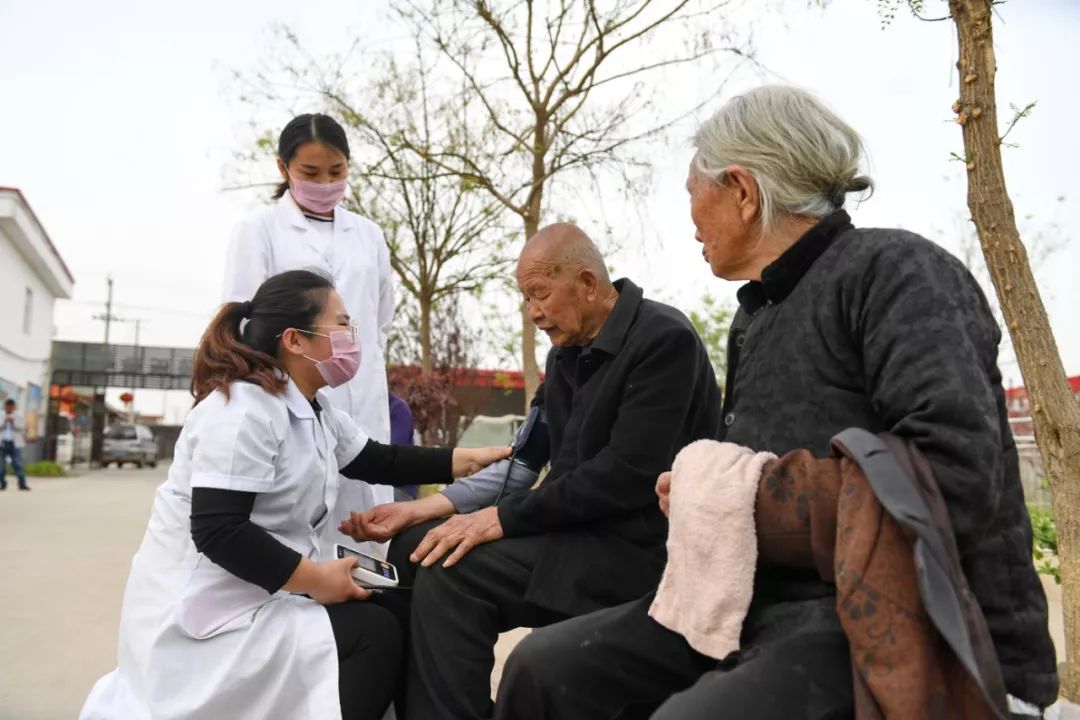 醫(yī)護人員在巨鹿縣南大韓村菘樂敬老院為老人測量血壓 牟宇 攝