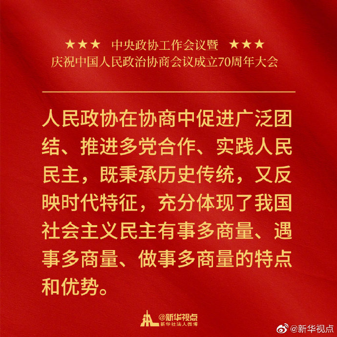 習(xí)近平在中央政協(xié)工作會(huì)議暨慶祝中國(guó)人民政治協(xié)商會(huì)議成立70周年大會(huì)上的講話金句