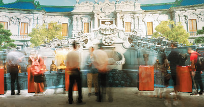 在圓明園海晏堂噴繪背景下,6個朱紅展柜里,分別陳列著牛首、虎首、猴首、豬首、鼠首和兔首銅像。這些獸首銅像原為海晏堂十二生肖噴泉構(gòu)件,1860年英法聯(lián)軍劫掠圓明園后流失海外。時隔159年,它們又重聚一堂,訴說著輾轉(zhuǎn)曲折的回歸之路,同時也見證著中華國運的滄桑巨變。