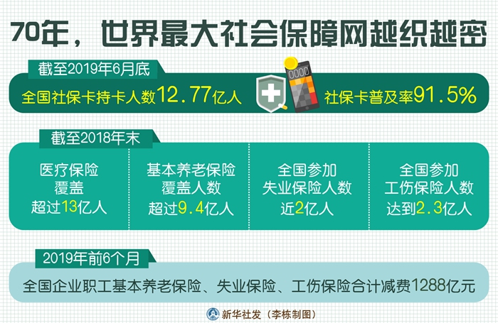 1951年2月26日,新中國成立后第一個社會保險法規(guī)《中華人民共和國勞動保險條例》頒布。70年來,一系列政策措施頒布實施,給老百姓帶來實實在在、看得見摸得著的好處。社會保障不斷加強,織就世界最大的社會保障網(wǎng)。