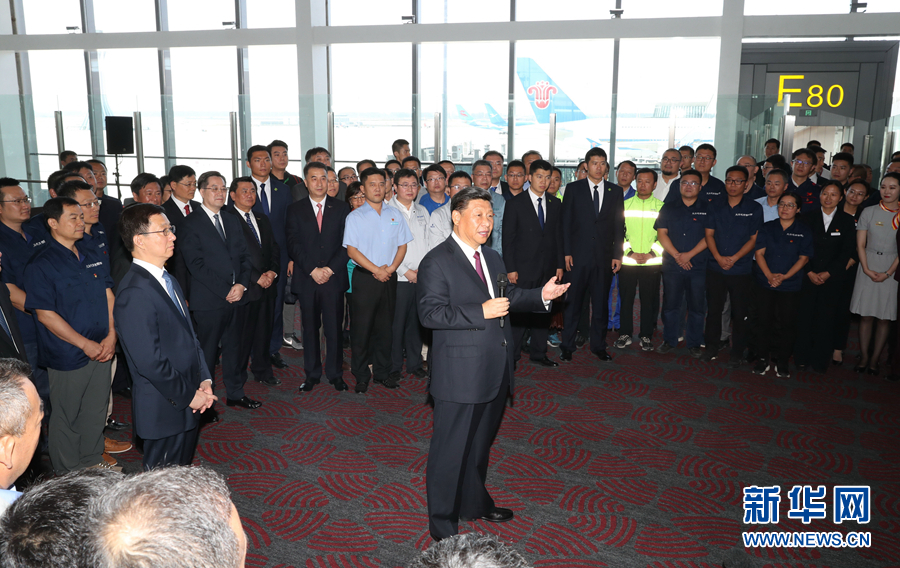 大興機(jī)場(chǎng)航站樓,是目前全球最大規(guī)模的單體航站樓,以其獨(dú)特的造型設(shè)計(jì)、精湛的施工工藝、便捷的交通組織、先進(jìn)的技術(shù)應(yīng)用,創(chuàng)造了許多世界之最。航站樓里,流線型的空間結(jié)構(gòu)十分寬敞明亮。習(xí)近平步行巡覽站臺(tái)大廳和值機(jī)大廳,實(shí)地了解值機(jī)、安檢、登機(jī)和殘疾人無(wú)障礙設(shè)施等情況,并結(jié)合沙盤和模型聽取機(jī)場(chǎng)總體規(guī)劃、設(shè)施建設(shè)等介紹。習(xí)近平強(qiáng)調(diào),大興國(guó)際機(jī)場(chǎng)是首都的重大標(biāo)志性工程,是推動(dòng)京津冀協(xié)同發(fā)展的骨干工程。京津冀三地要抓住機(jī)遇加強(qiáng)協(xié)同合作,加快推動(dòng)地區(qū)高質(zhì)量發(fā)展。民航業(yè)是國(guó)家重要的戰(zhàn)略產(chǎn)業(yè)。要建設(shè)更多更先進(jìn)的航空樞紐、更完善的綜合交通運(yùn)輸系統(tǒng),加快建設(shè)交通強(qiáng)國(guó)。