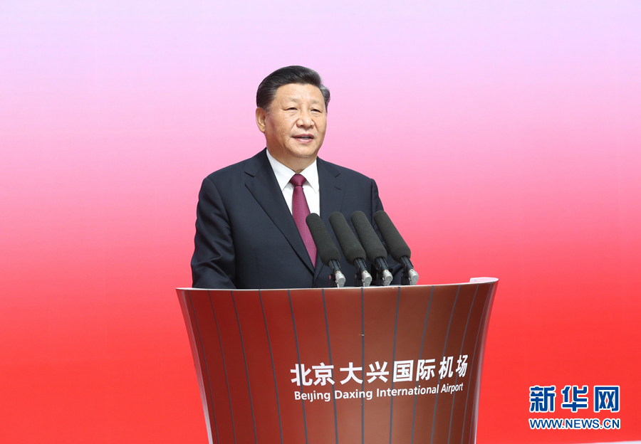 9月25日上午,北京大興國(guó)際機(jī)場(chǎng)投運(yùn)儀式在北京舉行。中共中央總書記、國(guó)家主席、中央軍委主席習(xí)近平出席儀式,宣布機(jī)場(chǎng)正式投運(yùn)并巡覽航站樓。 新華社記者 鞠鵬 攝