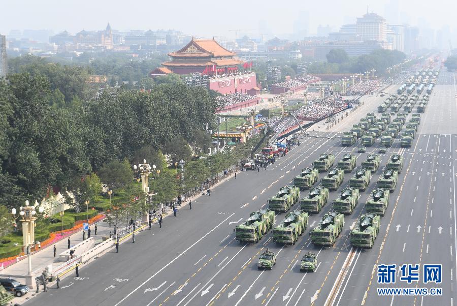 10月1日上午,慶祝中華人民共和國(guó)成立70周年大會(huì)在北京天安門廣場(chǎng)隆重舉行。這是裝備方隊(duì)通過(guò)天安門廣場(chǎng)。新華社記者 普布扎西 攝