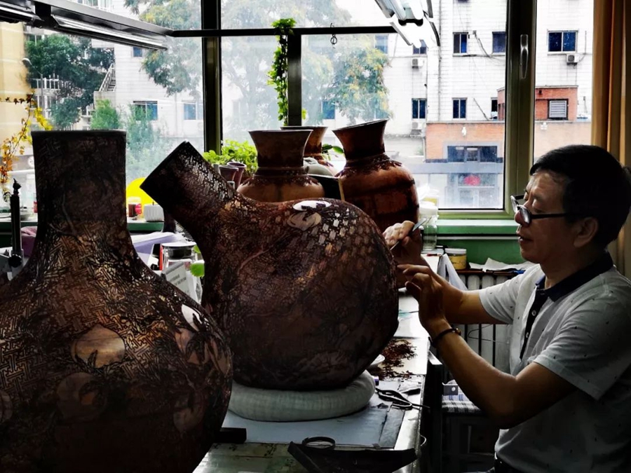 7月28日,北京。北京琺瑯廠的師傅正在制作工藝品。作者:齊天大圣