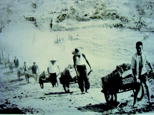 1967年,荊州地區(qū)調(diào)集了京山、天門、荊門、鐘祥和潛江五個(gè)縣的數(shù)萬(wàn)名民工與移民一起修筑了一條長(zhǎng)達(dá)45.4公里的漢江防洪堤,耗費(fèi)了土石共計(jì)6526萬(wàn)立方米。這些土石足夠填滿4.5個(gè)西湖了。這么大的工程全靠移民和民工肩挑背扛板車推。此后每年,移民都在此基礎(chǔ)上不斷加高圍堤。