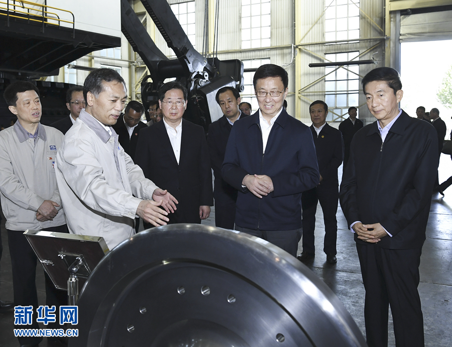 太原重型機(jī)械集團(tuán)有限責(zé)任公司是新中國(guó)自行設(shè)計(jì)建設(shè)的第一座重型機(jī)械廠。韓正來到這里,考察礦山挖掘機(jī)、高鐵輪對(duì)等先進(jìn)機(jī)械研發(fā)生產(chǎn)情況。韓正強(qiáng)調(diào),重型機(jī)械是國(guó)之重器,是先進(jìn)制造業(yè)的重要支撐,要加快產(chǎn)品智能化步伐,提高生產(chǎn)線和生產(chǎn)設(shè)備的國(guó)產(chǎn)化率,實(shí)現(xiàn)精密零部件加工的技術(shù)突破,積極拓展“一帶一路”沿線國(guó)家市場(chǎng),加強(qiáng)人才隊(duì)伍建設(shè),打造具有國(guó)際競(jìng)爭(zhēng)力的高端裝備制造產(chǎn)業(yè)。韓正走進(jìn)生產(chǎn)車間,勉勵(lì)一線工人抓住轉(zhuǎn)型升級(jí)機(jī)遇,推動(dòng)企業(yè)加快發(fā)展,實(shí)現(xiàn)個(gè)人價(jià)值。