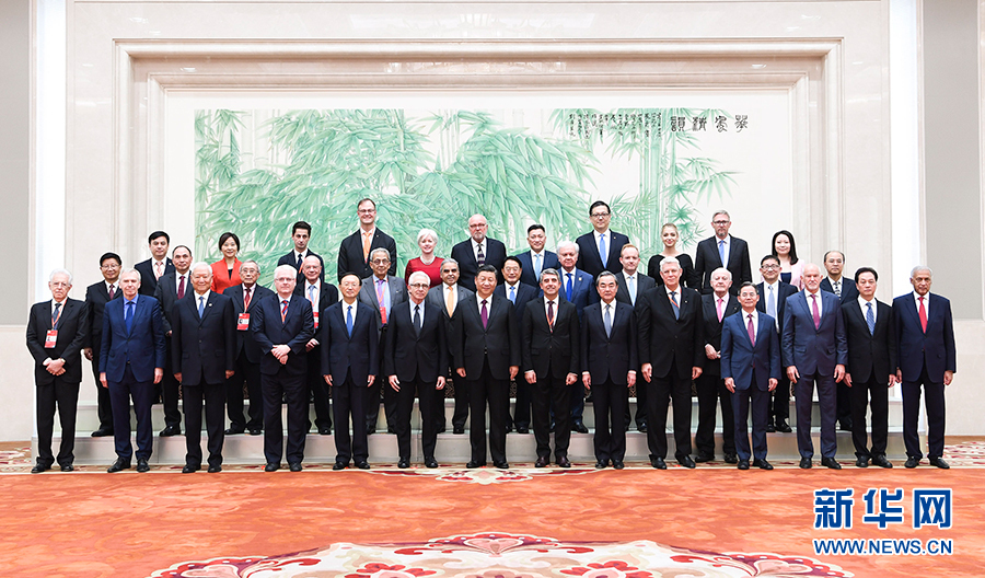 10月25日,國家主席習近平在北京人民大會堂會見出席2019年“讀懂中國”國際會議的外方嘉賓代表,同他們集體合影。 新華社記者 張領 攝
