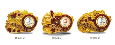“精彩紛呈”徽章的畫面選取中國足球聯(lián)賽和中國職業(yè)籃球聯(lián)賽畫面,象征著中國職業(yè)體育的發(fā)展歷程。中國體育產(chǎn)業(yè)正在快速發(fā)展,成為經(jīng)濟(jì)增長新動能?!凹畛砷L”徽章主畫面選取奧運金牌選手揮舞國旗、身穿品牌“戰(zhàn)衣”的奪冠經(jīng)典瞬間,各種體育裝備、器材環(huán)繞四周,體現(xiàn)出中國優(yōu)秀的體育企業(yè)與體育品牌經(jīng)過了數(shù)十年發(fā)展歷程?!坝行庞袗邸被照碌闹鳟嬅嬷?,三名青年迎著朝陽奔跑,身后一張張飄揚的體育彩票匯成旗幟,徽章下方金色雙手托起陽光,呈現(xiàn)出一幅“有信有愛,樂善人生”的畫面。