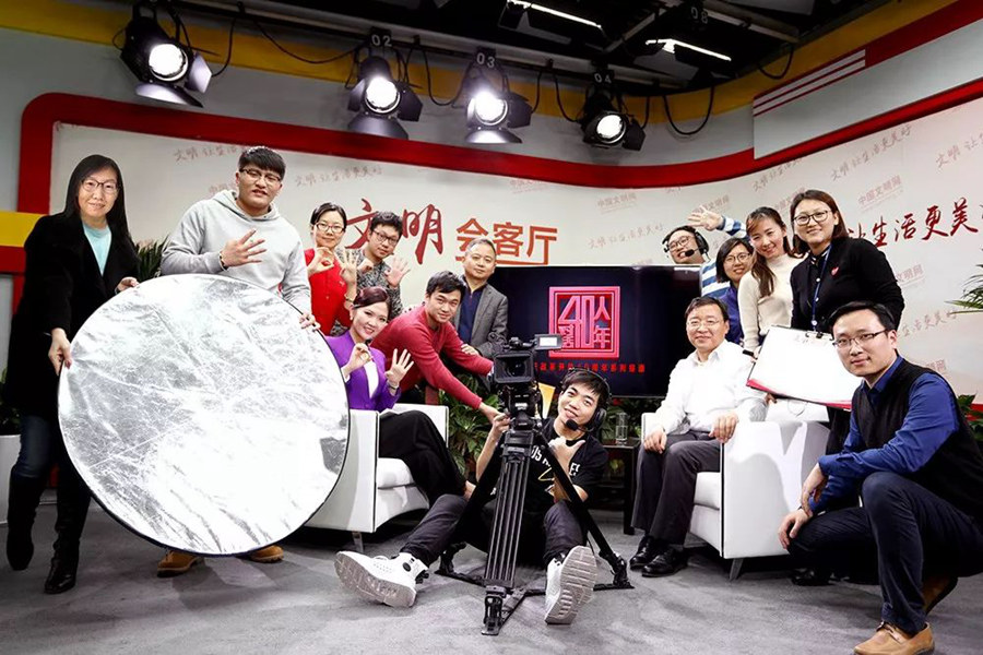 《40人對話40年》第40期節(jié)目殺青時部分工作人員合影。