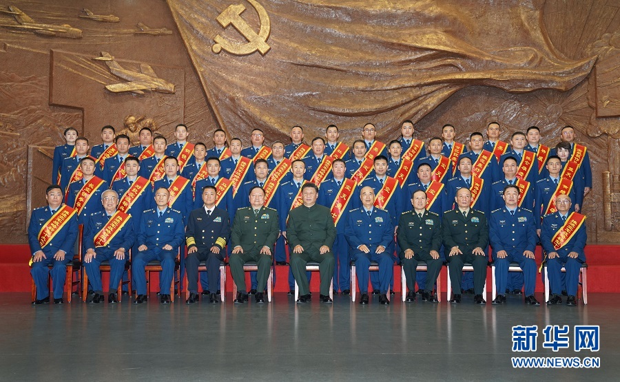 在熱烈的掌聲中,習(xí)近平親切接見(jiàn)空軍先進(jìn)單位和英模代表,勉勵(lì)他們珍惜榮譽(yù)、再接再厲,爭(zhēng)取更大光榮。