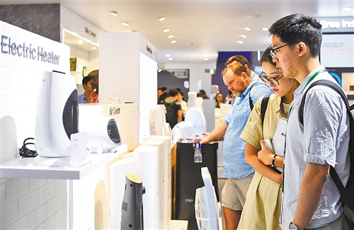 10月15日,采購商在廣交會家用電器展臺前觀看。 新華社記者 鄧 華攝