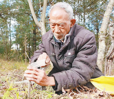 楊廷相不想放棄。隊(duì)上見他堅(jiān)持,就沒有再反對(duì)。這樣,楊廷相“爬爬跪跪”進(jìn)了林地,在密林深處搭起了一個(gè)窩棚,從此過著“天不亮就起,天不黑不歸”的生活。妹妹楊廷花每天給大哥送點(diǎn)包谷面和咸菜。家里人苦勸他幾次回家未果后,也就放棄了。楊廷相守林“認(rèn)樹不認(rèn)人”,但又注意方式方法,發(fā)現(xiàn)有人偷砍,他會(huì)在砍鑿處釘上一顆釘子,偷砍者下次就不好再動(dòng)手了。10年寒暑,楊廷相照看的林地始終是真峰村最好的。楊科禁不住感嘆,真沒想到,殘疾人比正常人管得還好!