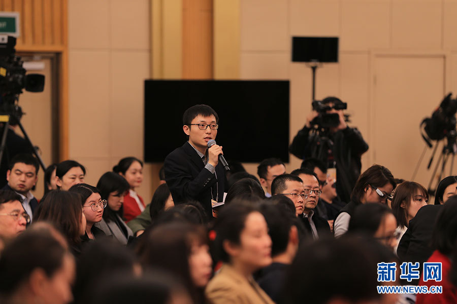 全國政協(xié)十三屆二次會(huì)議3月5日15:00在梅地亞中心多功能廳舉行記者會(huì),邀請5位全國政協(xié)委員就“打贏防范化解重大風(fēng)險(xiǎn)、精準(zhǔn)脫貧、污染防治三大攻堅(jiān)戰(zhàn)”回答記者提問。圖為法制日報(bào)記者提問。新華網(wǎng)/中國政府網(wǎng) 劉廈 攝?
