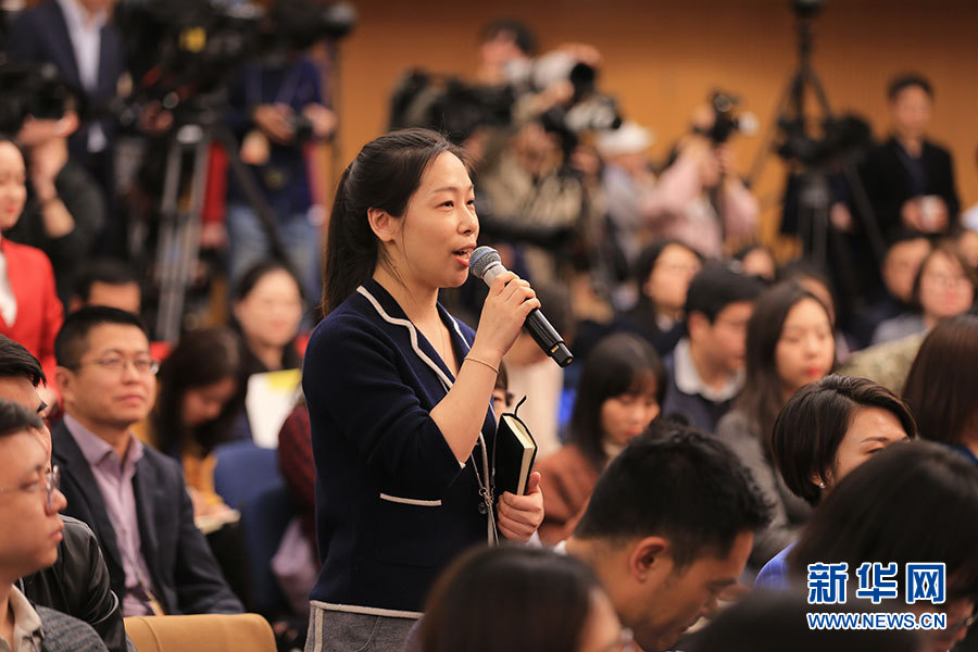 全國(guó)政協(xié)十三屆二次會(huì)議3月5日15:00在梅地亞中心多功能廳舉行記者會(huì),邀請(qǐng)5位全國(guó)政協(xié)委員就“打贏防范化解重大風(fēng)險(xiǎn)、精準(zhǔn)脫貧、污染防治三大攻堅(jiān)戰(zhàn)”回答記者提問。圖為大眾日?qǐng)?bào)記者提問。新華網(wǎng)/中國(guó)政府網(wǎng) 劉廈 攝?