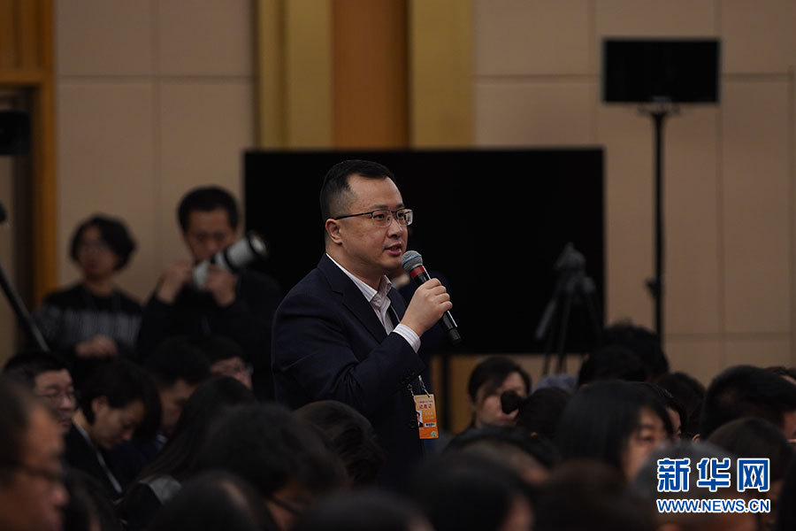 十三屆全國人大二次會議新聞中心3月7日9時在梅地亞中心新聞發(fā)布廳舉行記者會,邀請財政部部長劉昆,副部長程麗華、劉偉就“財稅改革和財政工作”相關(guān)問題回答中外記者提問。圖為人民日報記者提問。新華網(wǎng)/中國政府網(wǎng) 劉廈 攝
