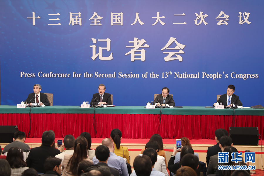 十三屆全國人大二次會議新聞中心3月8日10時在梅地亞中心新聞發(fā)布廳舉行記者會,邀請國務委員兼外交部長王毅就“中國外交政策和對外關系”相關問題回答中外記者提問。圖為王毅回答記者提問。新華網(wǎng)/中國政府網(wǎng)?陳杰 攝