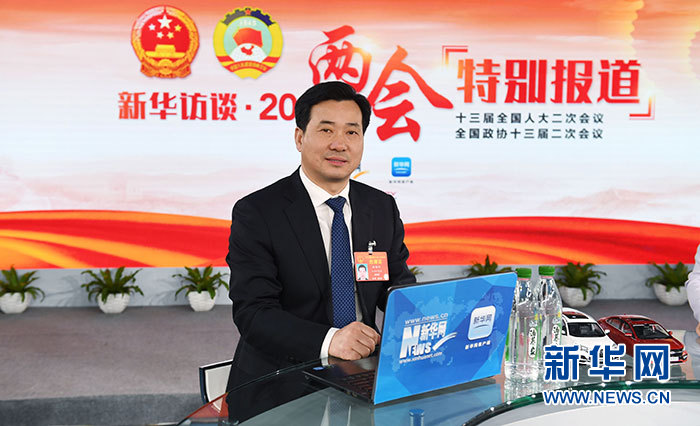 全國人大代表、江蘇科行環(huán)保股份有限公司董事長劉懷平做客新華網(wǎng)2019全國兩會特別報道。新華網(wǎng) 李相博攝。