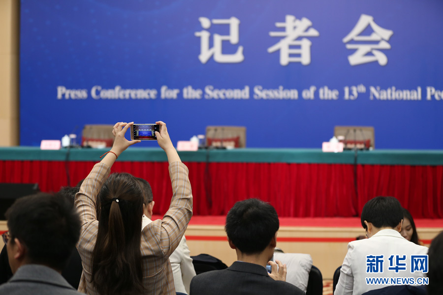 十三屆全國人大二次會議新聞中心3月8日10時在梅地亞中心新聞發(fā)布廳舉行記者會,邀請國務委員兼外交部長王毅就“中國外交政策和對外關系”相關問題回答中外記者提問。圖為記者在現(xiàn)場準備。新華網(wǎng)/中國政府網(wǎng) 劉廈 攝