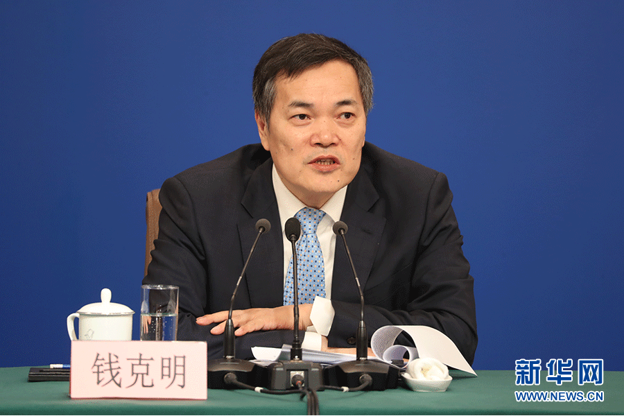 十三屆全國(guó)人大二次會(huì)議新聞中心3月9日(星期六)10時(shí)30分在梅地亞中心新聞發(fā)布廳舉行記者會(huì),邀請(qǐng)商務(wù)部部長(zhǎng)鐘山、副部長(zhǎng)兼國(guó)際貿(mào)易談判副代表王受文、副部長(zhǎng)錢克明就“促進(jìn)形成強(qiáng)大國(guó)內(nèi)市場(chǎng) 推動(dòng)全方位對(duì)外開放”相關(guān)問(wèn)題回答中外記者提問(wèn)。圖為錢克明回答記者提問(wèn)。新華網(wǎng)/中國(guó)政府網(wǎng) 陳杰 攝