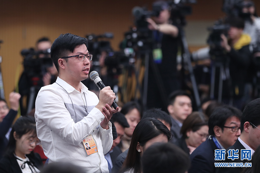 十三屆全國人大二次會議新聞中心3月11日(星期一)10時30分在梅地亞中心新聞發(fā)布廳舉行記者會,邀請國家市場監(jiān)督管理總局局長張茅、國家藥品監(jiān)督管理局局長焦紅、國家知識產(chǎn)權(quán)局局長申長雨就“加強市場監(jiān)管 維護市場秩序”相關(guān)問題回答中外記者提問。圖為南方都市報南方報業(yè)全媒體記者提問。新華網(wǎng)/中國政府網(wǎng) 劉廈 攝