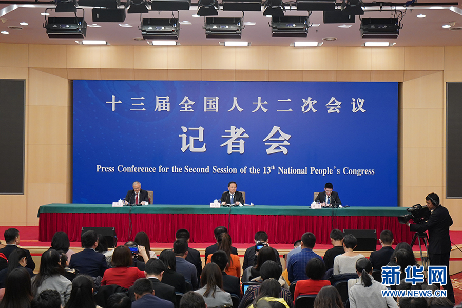 十三屆全國人大二次會議新聞中心于3月11日(星期一)15時在梅地亞中心新聞發(fā)布廳舉行記者會,邀請生態(tài)環(huán)境部部長李干杰就“打好污染防治攻堅戰(zhàn)”相關問題回答中外記者提問。圖為記者會現(xiàn)場。新華網(wǎng)/中國政府網(wǎng) 劉廈 攝