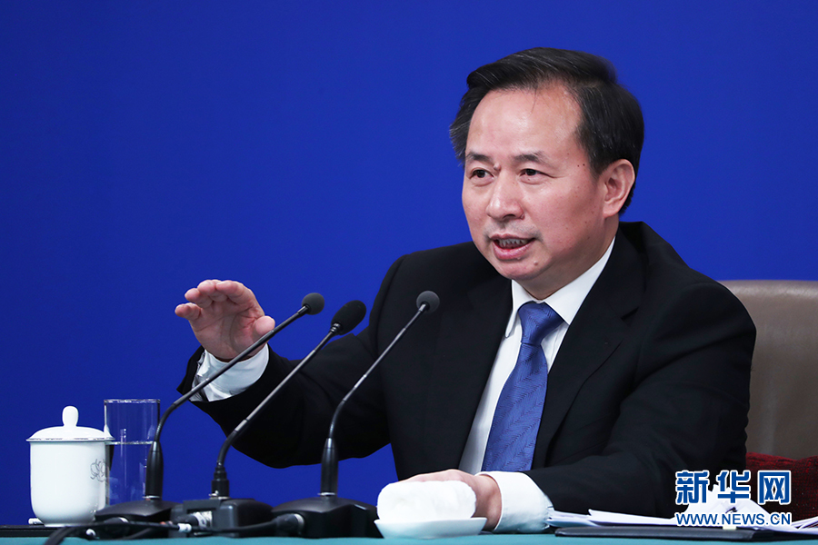 十三屆全國(guó)人大二次會(huì)議新聞中心于3月11日(星期一)15時(shí)在梅地亞中心新聞發(fā)布廳舉行記者會(huì),邀請(qǐng)生態(tài)環(huán)境部部長(zhǎng)李干杰就“打好污染防治攻堅(jiān)戰(zhàn)”相關(guān)問題回答中外記者提問。圖為李干杰回答記者提問。新華網(wǎng)/中國(guó)政府網(wǎng) 劉廈 攝