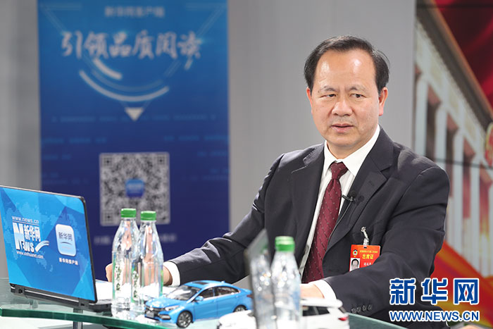 3月13日, 全國政協(xié)委員,廣西民族大學(xué)黨委副書記、校長謝尚果做客新華網(wǎng)2019全國兩會特別報道。 新華網(wǎng) 郭小天 攝