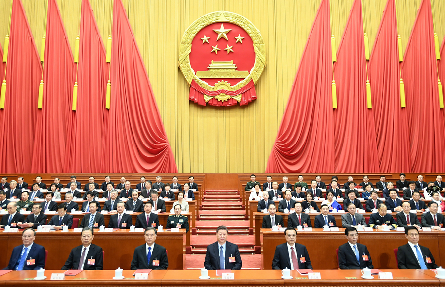 3月15日,第十三屆全國(guó)人民代表大會(huì)第二次會(huì)議在北京人民大會(huì)堂閉幕。習(xí)近平等黨和國(guó)家領(lǐng)導(dǎo)人在主席臺(tái)就座。 新華社記者 謝環(huán)馳 攝
