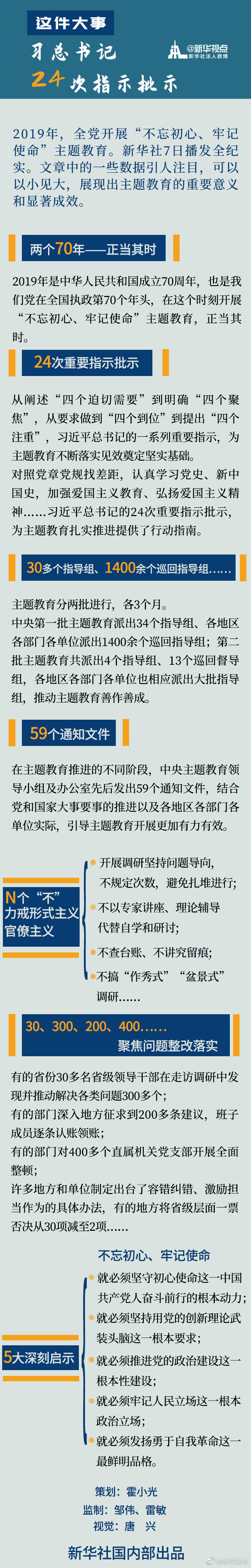對(duì)照黨章黨規(guī)找差距,認(rèn)真學(xué)習(xí)黨史、新中國(guó)史,加強(qiáng)愛(ài)國(guó)主義教育、弘揚(yáng)愛(ài)國(guó)主義精神……習(xí)近平總書(shū)記的24次重要指示批示,為主題教育扎實(shí)推進(jìn)提供了行動(dòng)指南。