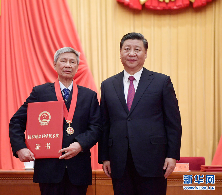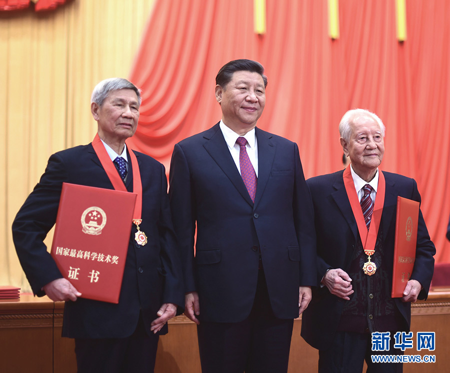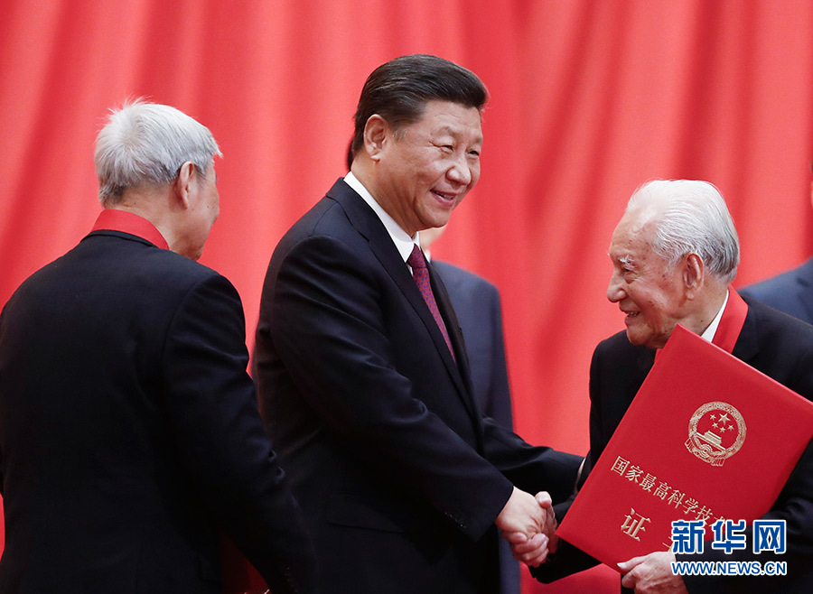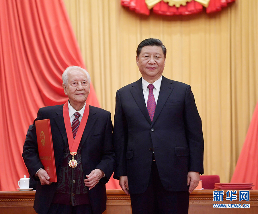 1月10日,2019年度國(guó)家科學(xué)技術(shù)獎(jiǎng)勵(lì)大會(huì)在北京人民大會(huì)堂隆重舉行。中共中央總書(shū)記、國(guó)家主席、中央軍委主席習(xí)近平向獲得2019年度國(guó)家最高科學(xué)技術(shù)獎(jiǎng)的原中國(guó)船舶重工集團(tuán)公司第七一九研究所黃旭華院士頒獎(jiǎng)。 新華社記者 李學(xué)仁 攝
