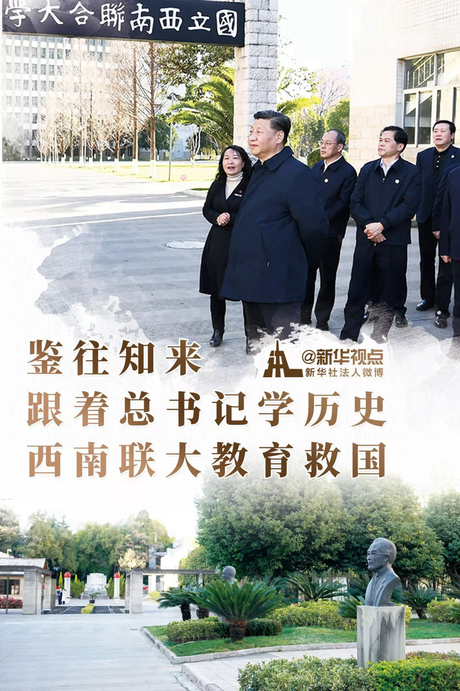 正在云南考察的習(xí)近平總書記20日下午來到國立西南聯(lián)合大學(xué)舊址,參觀西南聯(lián)大博物館等,了解抗戰(zhàn)期間西南聯(lián)大師生教書救國、讀書報(bào)國的光榮歷史。