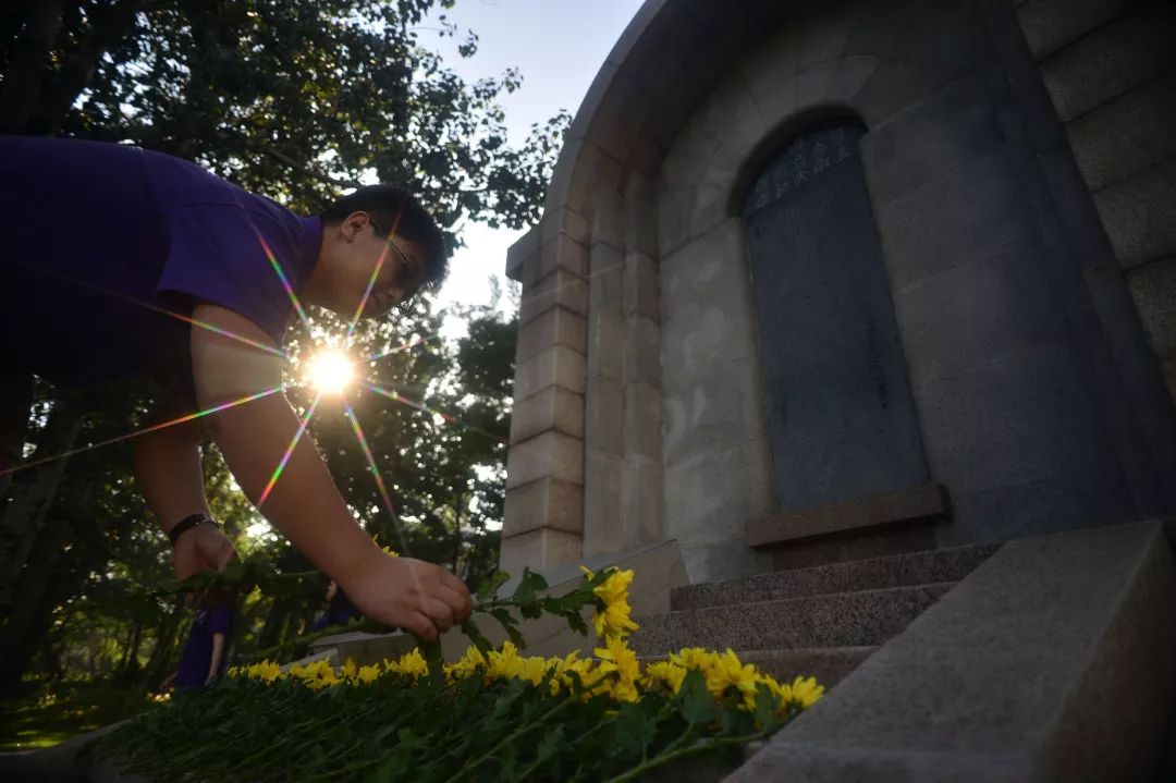 2015年9月3日,在天津南開大學(xué)校園內(nèi)的西南聯(lián)合大學(xué)紀(jì)念碑前,師生代表向南開抗戰(zhàn)英烈獻(xiàn)花