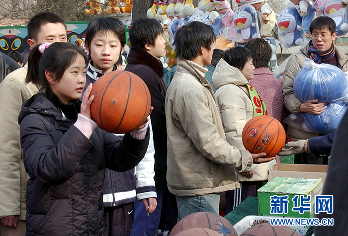 2006年1月31日,市民在廟會上玩起投籃游戲。(圖片來源:新華社 記者 王呈選攝)