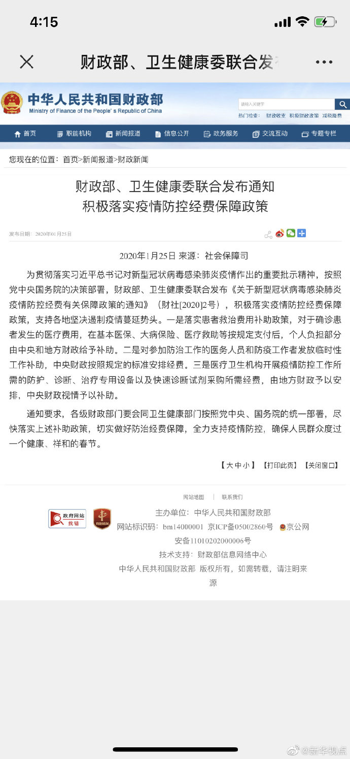 記者25日從財(cái)政部獲悉,財(cái)政部、衛(wèi)生健康委聯(lián)合發(fā)布通知,對(duì)于確診患者發(fā)生的醫(yī)療費(fèi)用,在基本醫(yī)保、大病保險(xiǎn)、醫(yī)療救助等按規(guī)定支付后,個(gè)人負(fù)擔(dān)部分由中央和地方財(cái)政給予補(bǔ)助。對(duì)參加防治工作的醫(yī)務(wù)人員和防疫工作者發(fā)放臨時(shí)性工作補(bǔ)助,中央財(cái)政按照規(guī)定的標(biāo)準(zhǔn)安排經(jīng)費(fèi)。醫(yī)療衛(wèi)生機(jī)構(gòu)開(kāi)展疫情防控工作所需的防護(hù)、診斷、治療專用設(shè)備以及快速診斷試劑采購(gòu)所需經(jīng)費(fèi),由地方財(cái)政予以安排,中央財(cái)政視情予以補(bǔ)助。(記者郁瓊源)