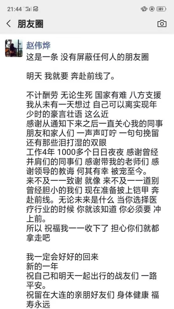 通知下發(fā)后,大連各大醫(yī)院醫(yī)護(hù)人員紛紛主動請纓:“只要被需要,義無反顧,放心吧主任,我強(qiáng)壯”“主任,我也可以去武漢,等待您的派遣”“一切聽從組織安排”“需要我們的時(shí)候到了,沒有硝煙的戰(zhàn)場需要我們,我自愿加入抗擊疫情的隊(duì)伍”……醫(yī)院微信群里被自愿報(bào)名聲刷屏。